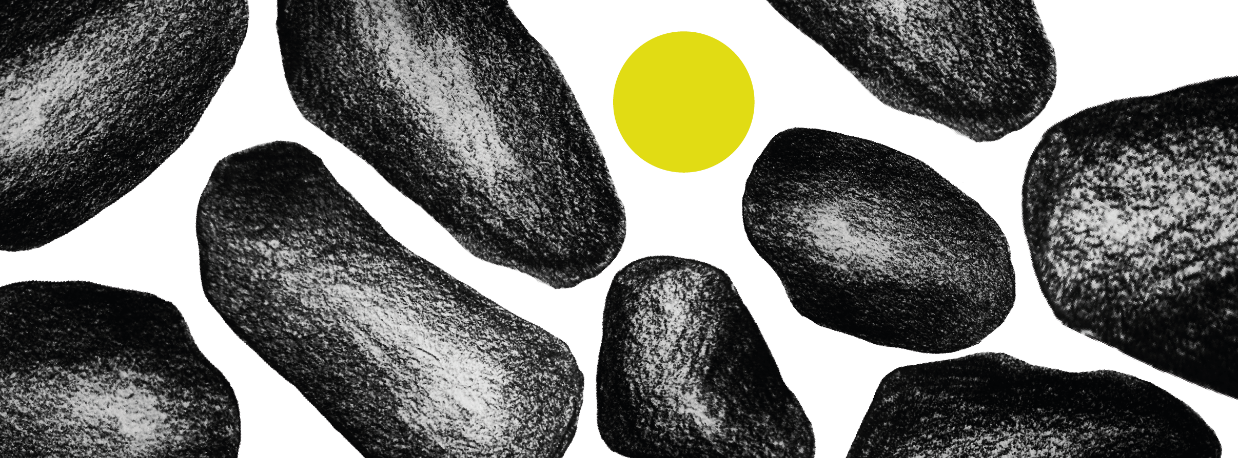 The unconventional form where the silhouette is built from seemingly randomly arranged stones serves as the perfect starting point for the entire visual identity. The combination of traditional techniques and interesting textures along with raw digital elements also allows for an intriguing effect.